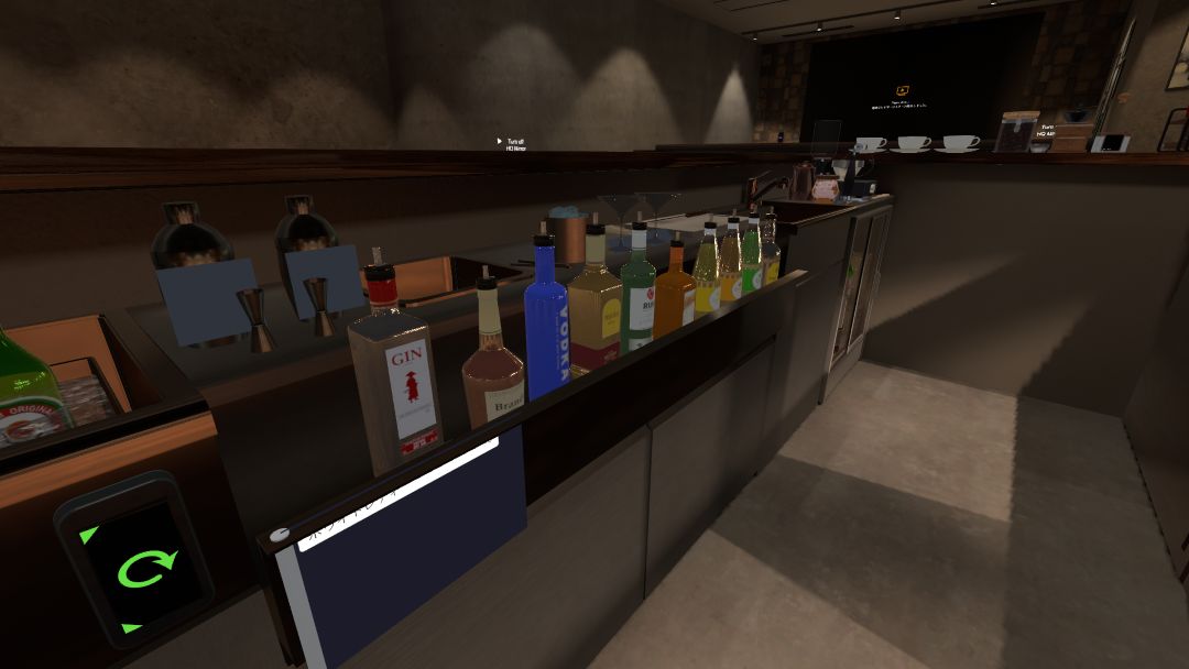 店内には各種アルコール類やコーヒーを作れるアセットが完備されており、実際に飲み物を用意するロールプレイを楽しむことができます。