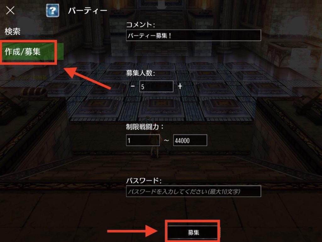 ここからは、自分でパーティーを募集する方法を紹介していきます!