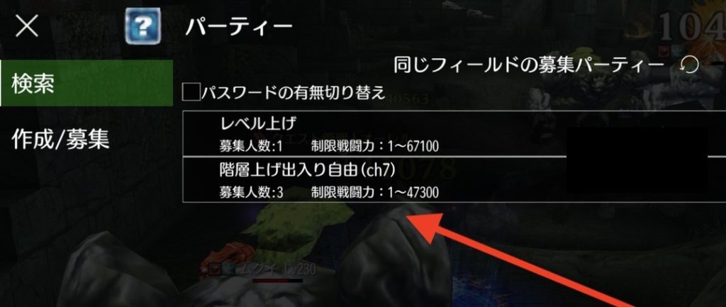 たまに自分の戦闘力が募集しているパーティーの条件に満たなくて参加できないこともあります。