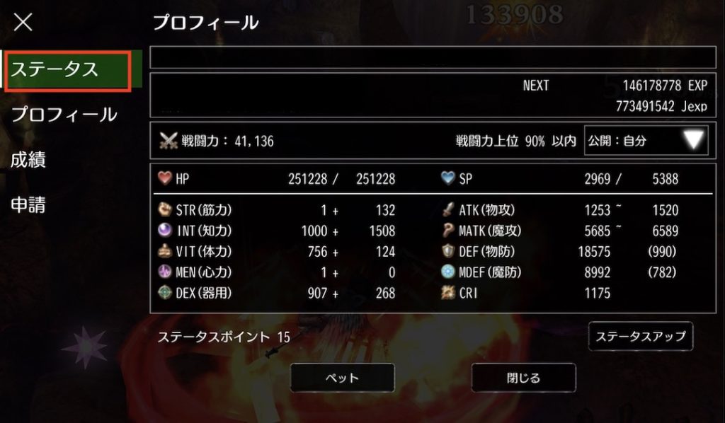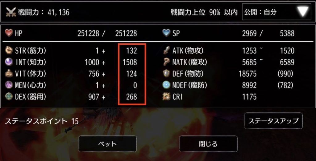 MATKはINT(知力)を上げることで上昇するので、魔法系の職を育成するならINTにステ振りしていけばいいことになります。