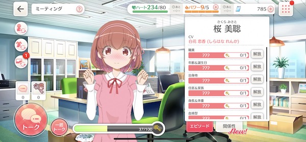 ミーティングでキャラクターを選んだら「トーク」をすることで、ディレクターに隠しているプロフィールが解放されていきます。