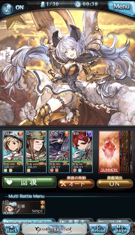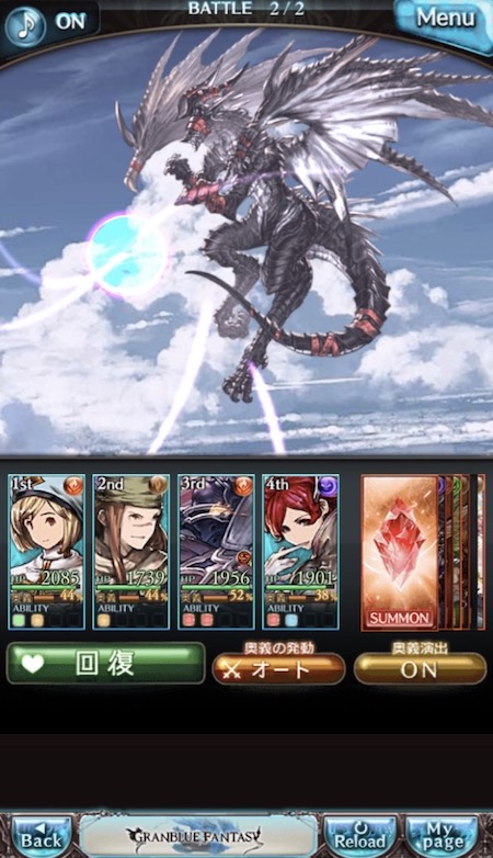 グラブルのバトルは、攻撃ボタンをタップするだけの簡単操作です。
