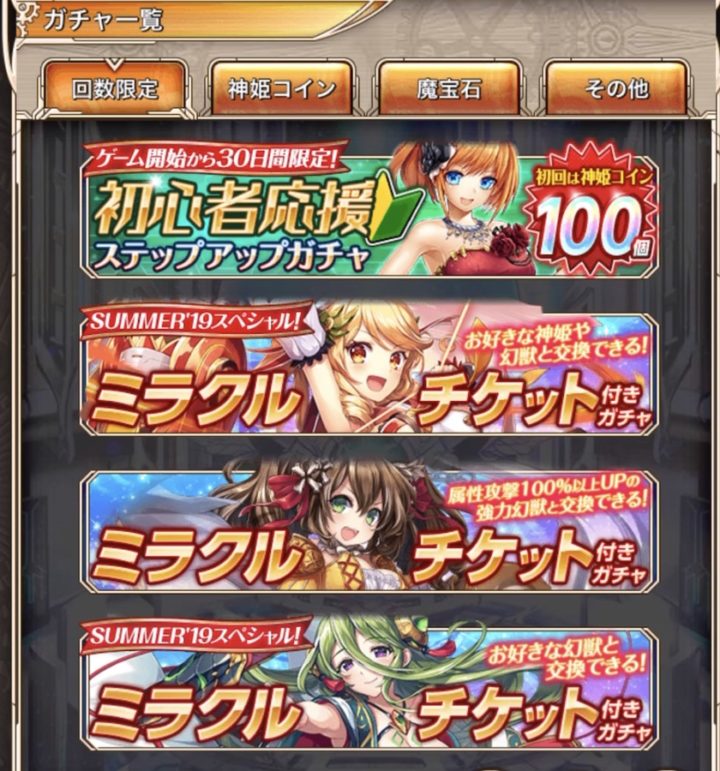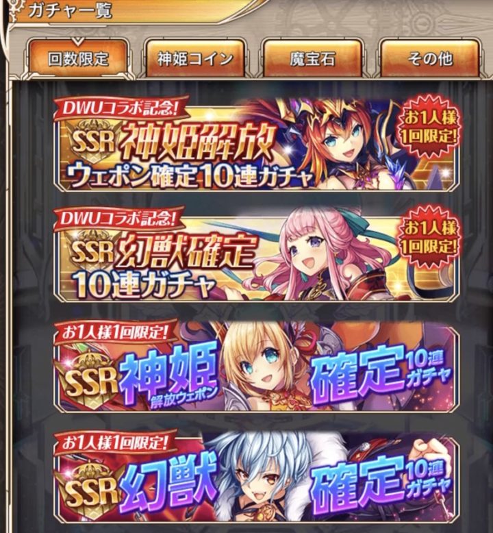 ガチャで入手できるのは、武器だけでなく、神姫と幻獣になります。