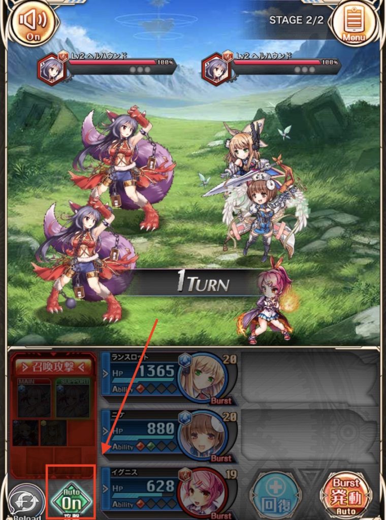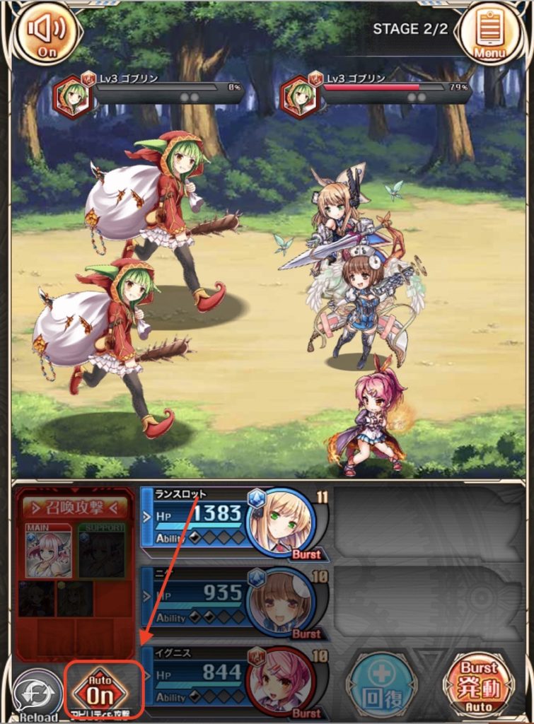また、バトルはオートモードにも対応しているので、画面左下の赤枠部分をONにすることでオートでバトルを進行してくれます。