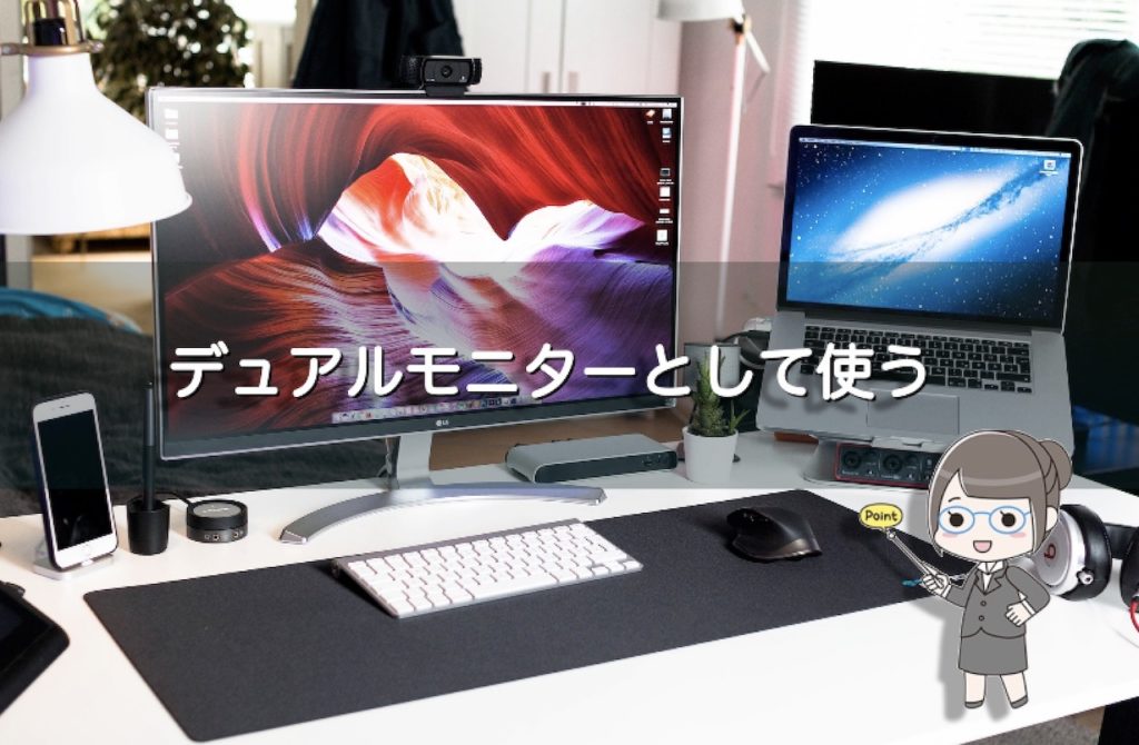 Mac Book Proを外部モニターに接続してデュアルディスプレイとして使うことです。