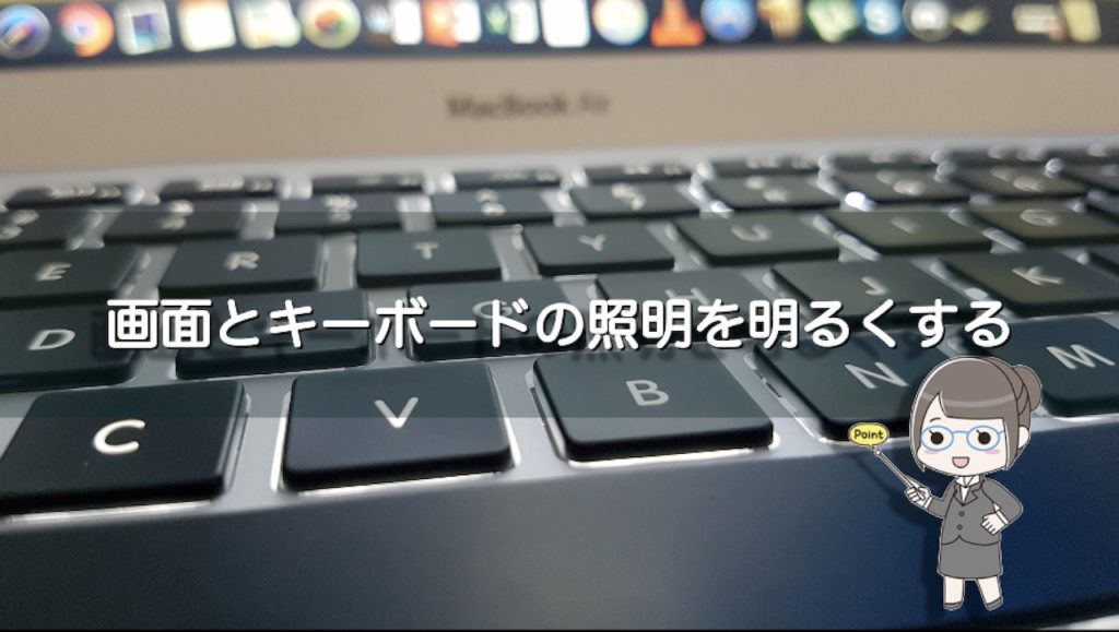 画面を明るく・キーボードの照明を明るくする