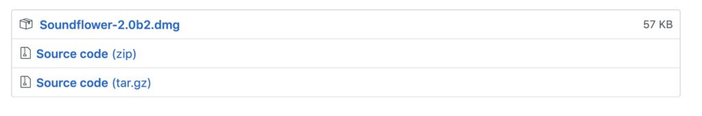 こんな感じのダウンロードリンクがあるので、一番上の「Soundflower-2.0b2.dmg」をクリックしてアプリをダウンロードします。