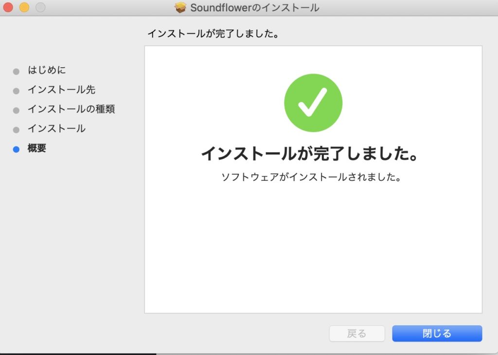 めでたくインストールが完了すると、上の画像のように「インストールが完了しました」と表示されるので画面を閉じます。